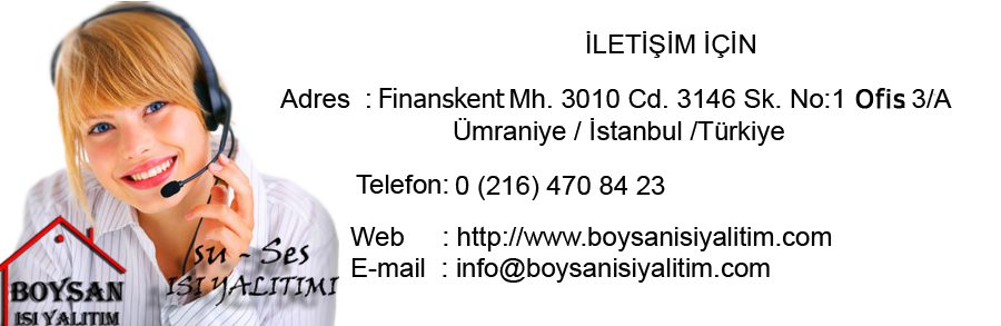 Boysan Isı Yalıtım Sanayi E-Mail: info@boysanisiyalitim.com Adres: Finanskent Mh. 3009 Cd. No:7/B Ümraniye / İstanbul Telefon: 216 470 84 23 / 532 401 41 50